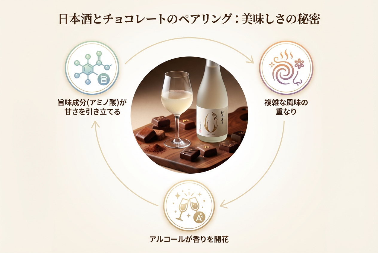 一見意外に思える日本酒とチョコレートの組み合わせですが、実は科学的にも理にかなった相性の良さがあります。